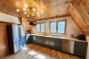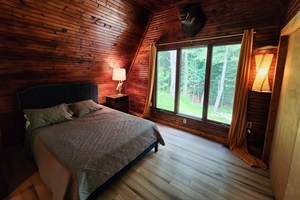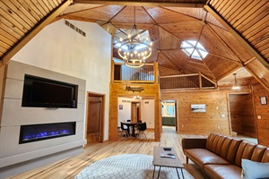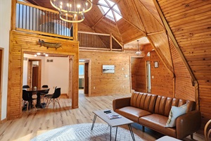 4 Bedrooms • 3 Bathrooms (2 full, 1 half) 3 Baths (2 full, 1 half) • Sleeps 7-10Beautiful geodome home with amazing wood woodwork and all the amenities of home. This newly remodeled home even has a hot tub to let your cares melt away. The game room has a foosball table for your enjoyment. The wrap around deck has a great view of the pond across the road and is a great place to hang out and grill your favorite meal. Located in the country yet close to stores for all your vacation needs.