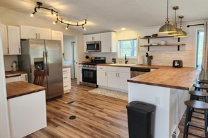 3 Bedrooms • 2 Bathrooms 2 Baths • Sleeps 6-8Newly remodeled 3 bedroom 2 bath cottage on private Government Lake. Includes kayaks, paddle boat, and 6-person hot tub! Enjoy the quiet, no wake, private Government Lake. Soak in the 6-person hot tub after a day of activities. Close to Baldwin and the Pere Marquette River or do a day trip to Ludington, Silver Lake or Pentwater. Fenced in front yard gives your pet a great place to hang out. A great place to relax and unwind or use as a home base for day trips.