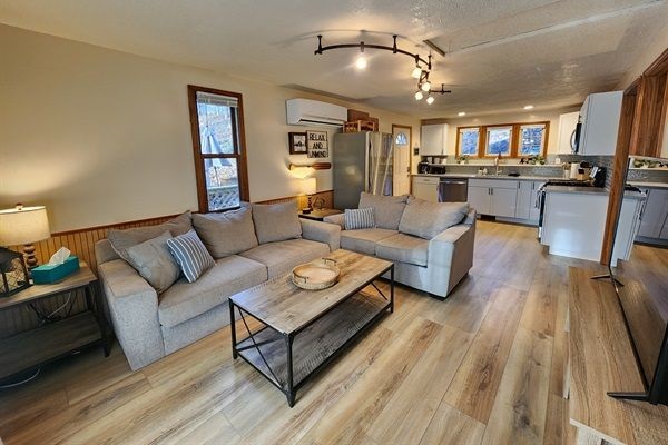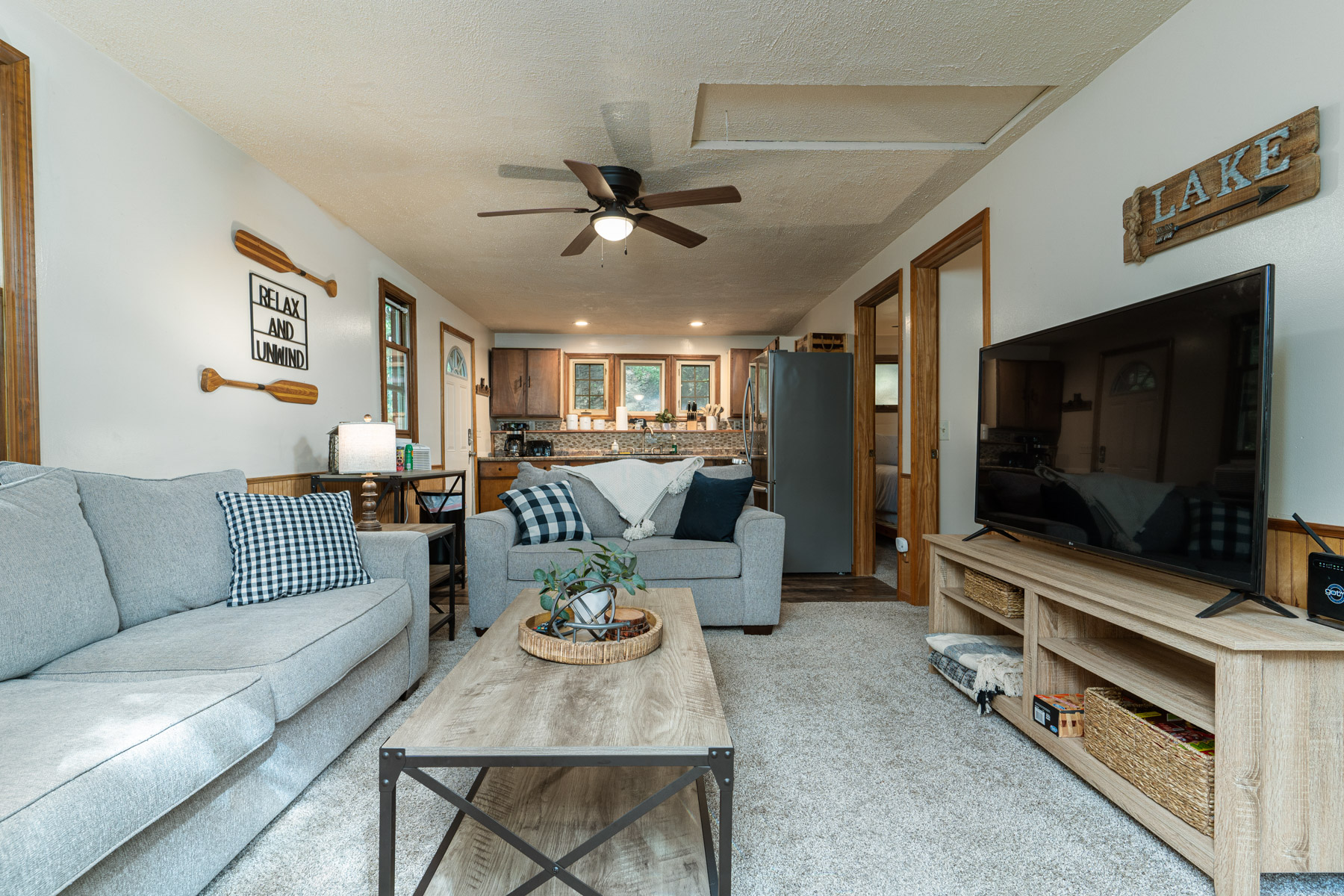Comfortable Indoors: -new Mini split with heat and AC -newly remodeled kitchen with stainless steel appliances -smart TV -high speed wifi -walkout basement -*NO lake access