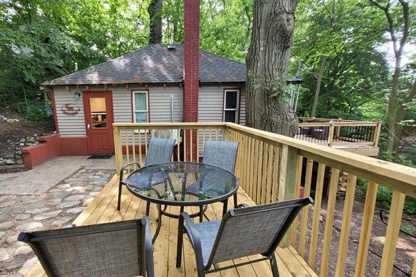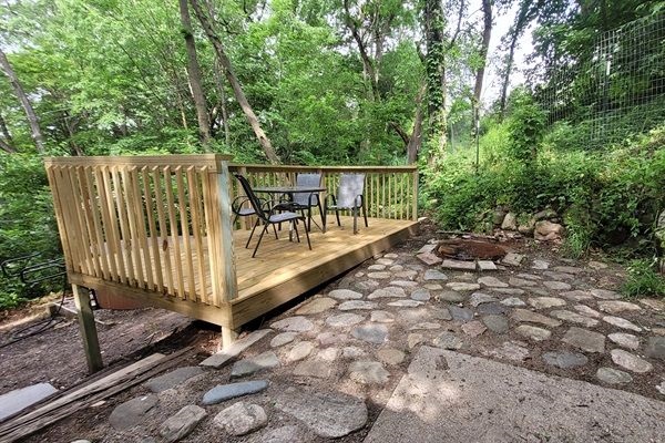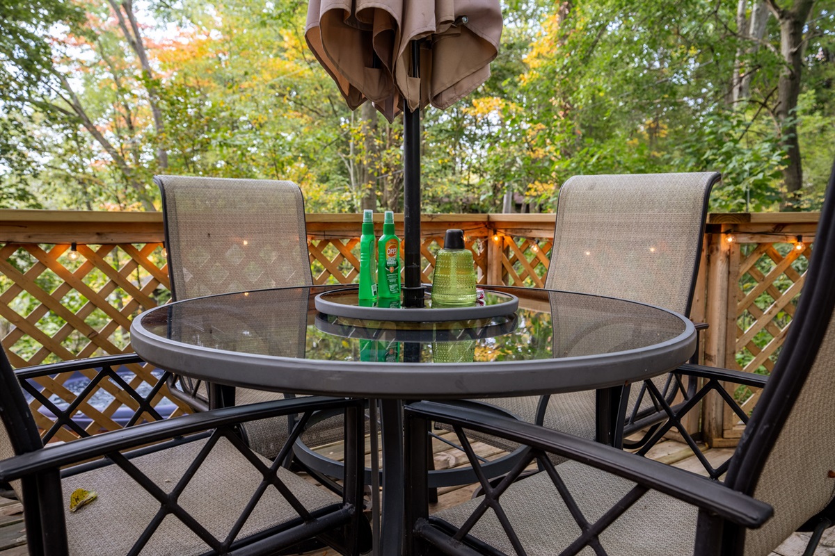 Now for ALL the details! Quiet Outdoors: -NEW 4-person hot tub -picturesque with plenty of nature -wooded with large mature trees -fire pit -patio table and chairs -gas grill -upper deck and separate patio area